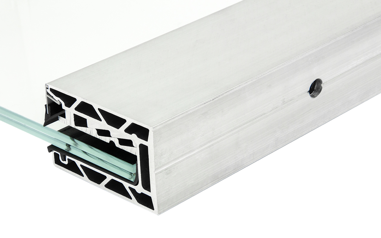 Системы зажимных алюминиевых профилей т100 предназначены для 8 типов размеров зажимаемых закаленных стекол: 10мм, 12мм, 16мм, 20мм, а также триплекса 5+5мм, 6+6мм, 8+8мм, 10+10мм