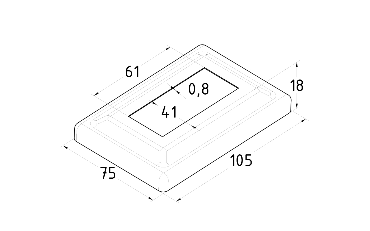 Низ стойки под трубу 105х75х0.8 мм для трубы 61х41 мм, полированный 400 Grit (AISI 304) k399