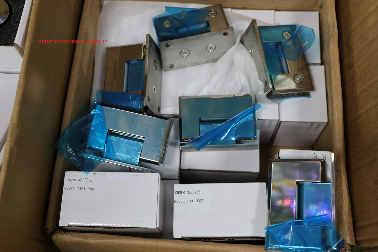 Петля для душевой кабины стена-стекло 90° 90х55 мм. Поверхность - полированная. Марка стали - AISI 304