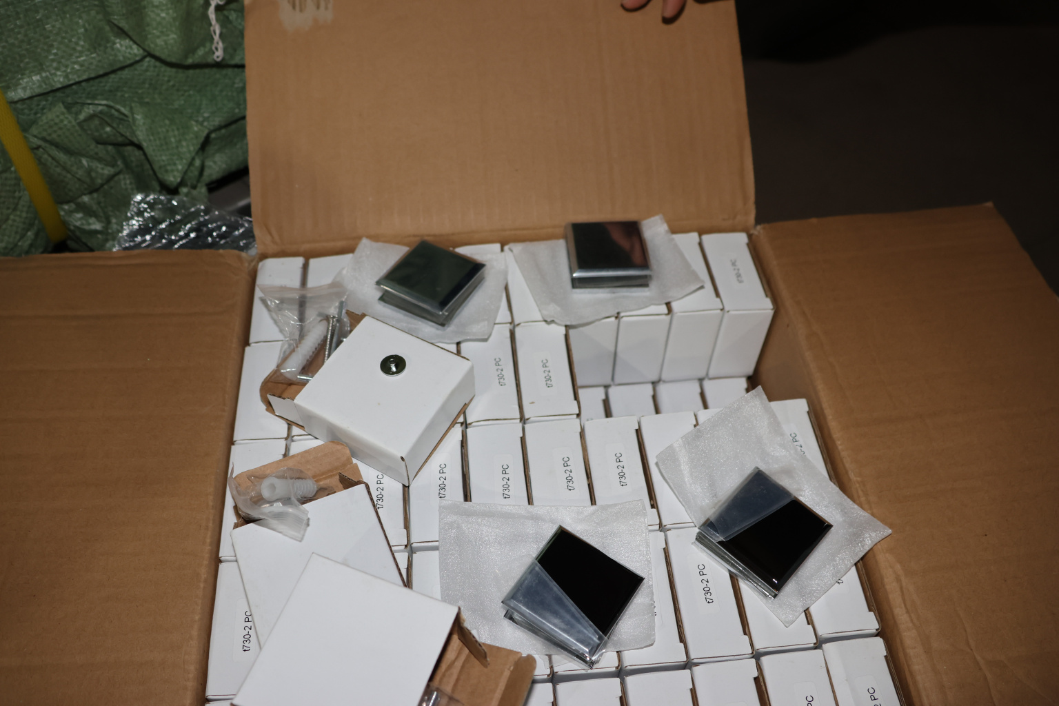 Коннектор разбирается на две половинки, Г-образной стороной крепится к стене на саморезы. Затем к нему прикладывается стекло с заранее заготовленным вырезом согласно чертежу, а далее второй половинкой стекло зажимается.