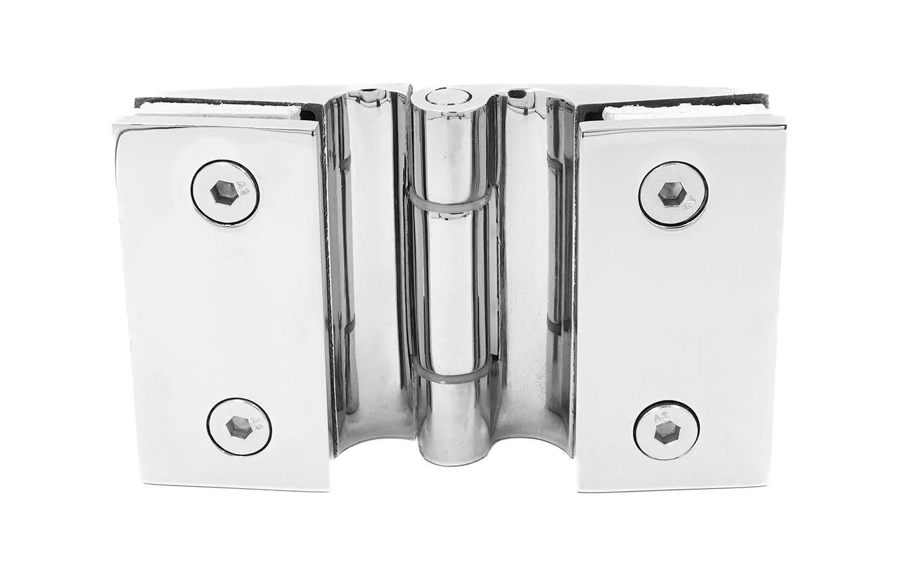 Петля односторонняя стекло-стекло 180°, без фиксации и самозакрывания, полированная. Выдерживает нагрузку 35 кг на две петли. Материал нержавеющая сталь AISI 304