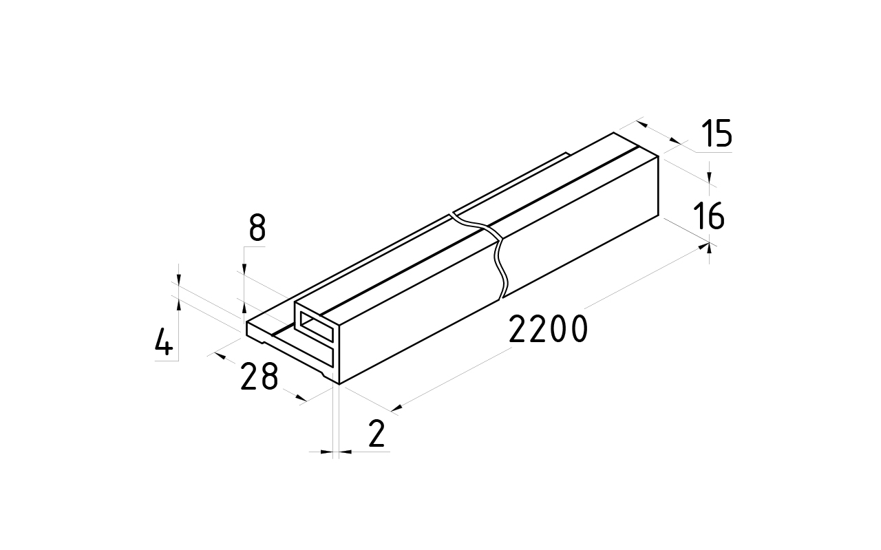 Профиль-упор для душевых, длина 2200 мм, хим полировка t116 AL