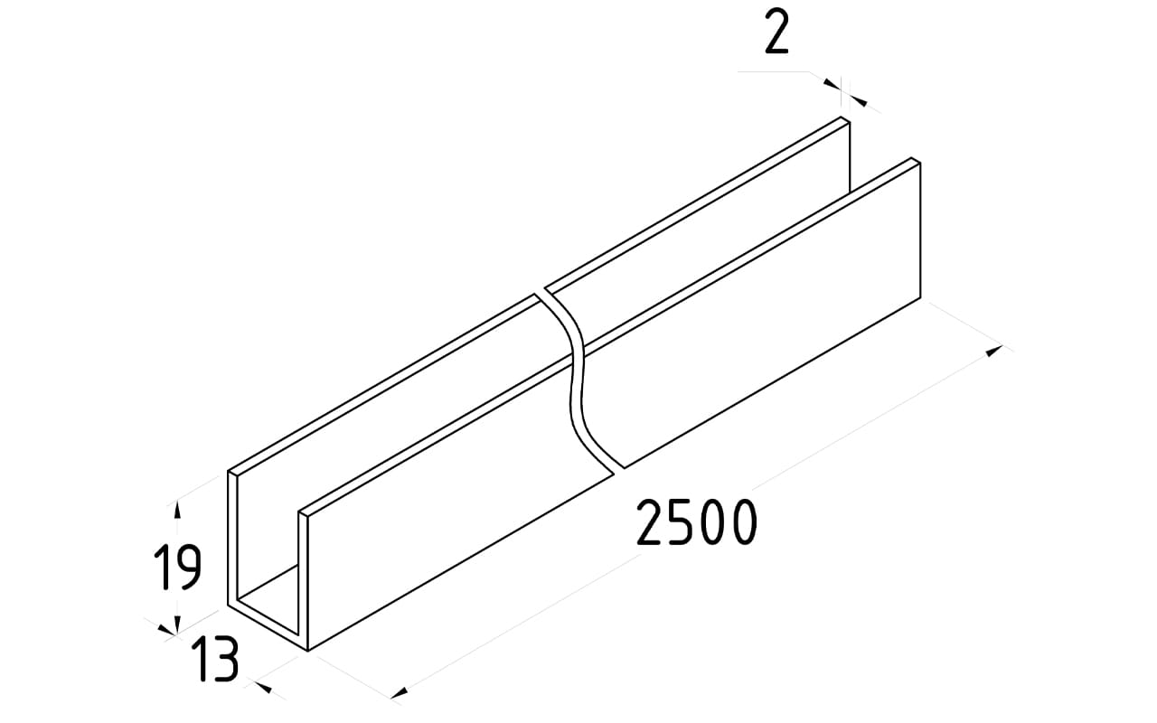 П-образный профиль для неподвижных стекол 8мм, 19x13, L=2500, алюминий полированный