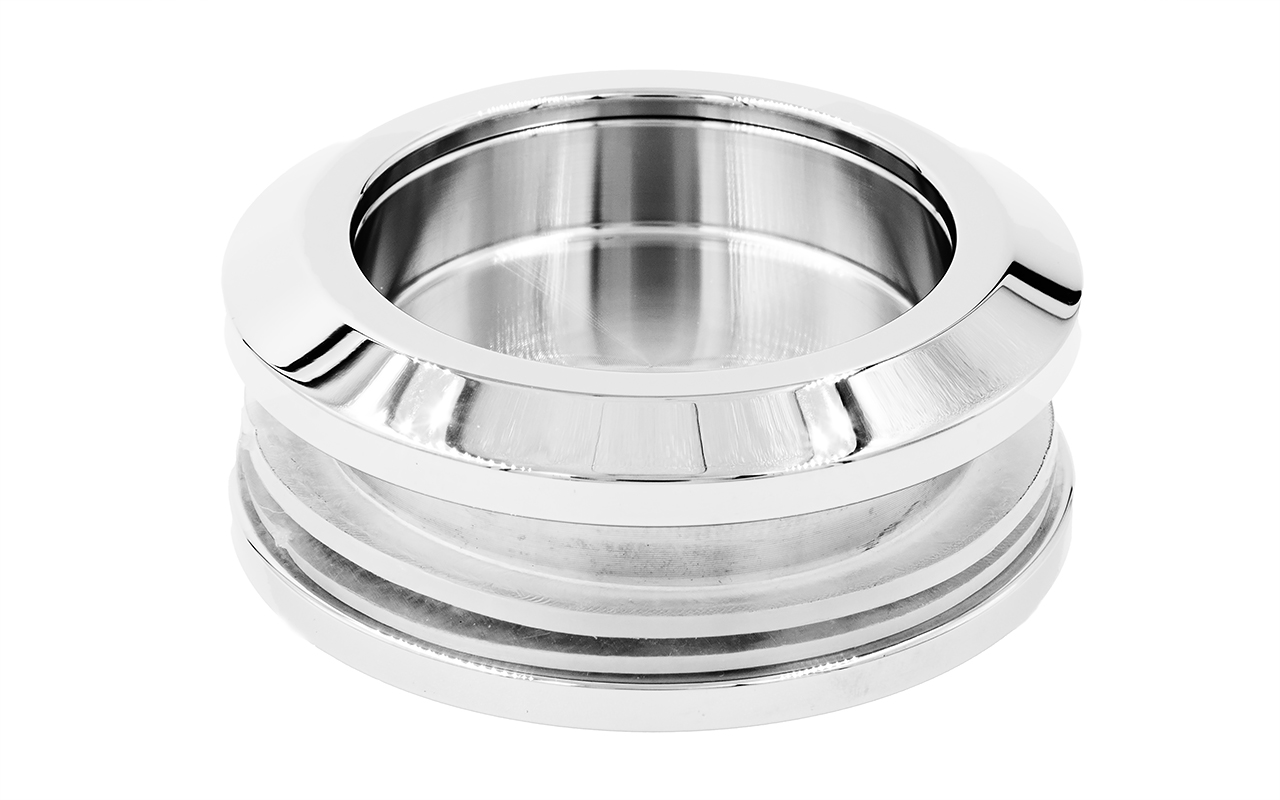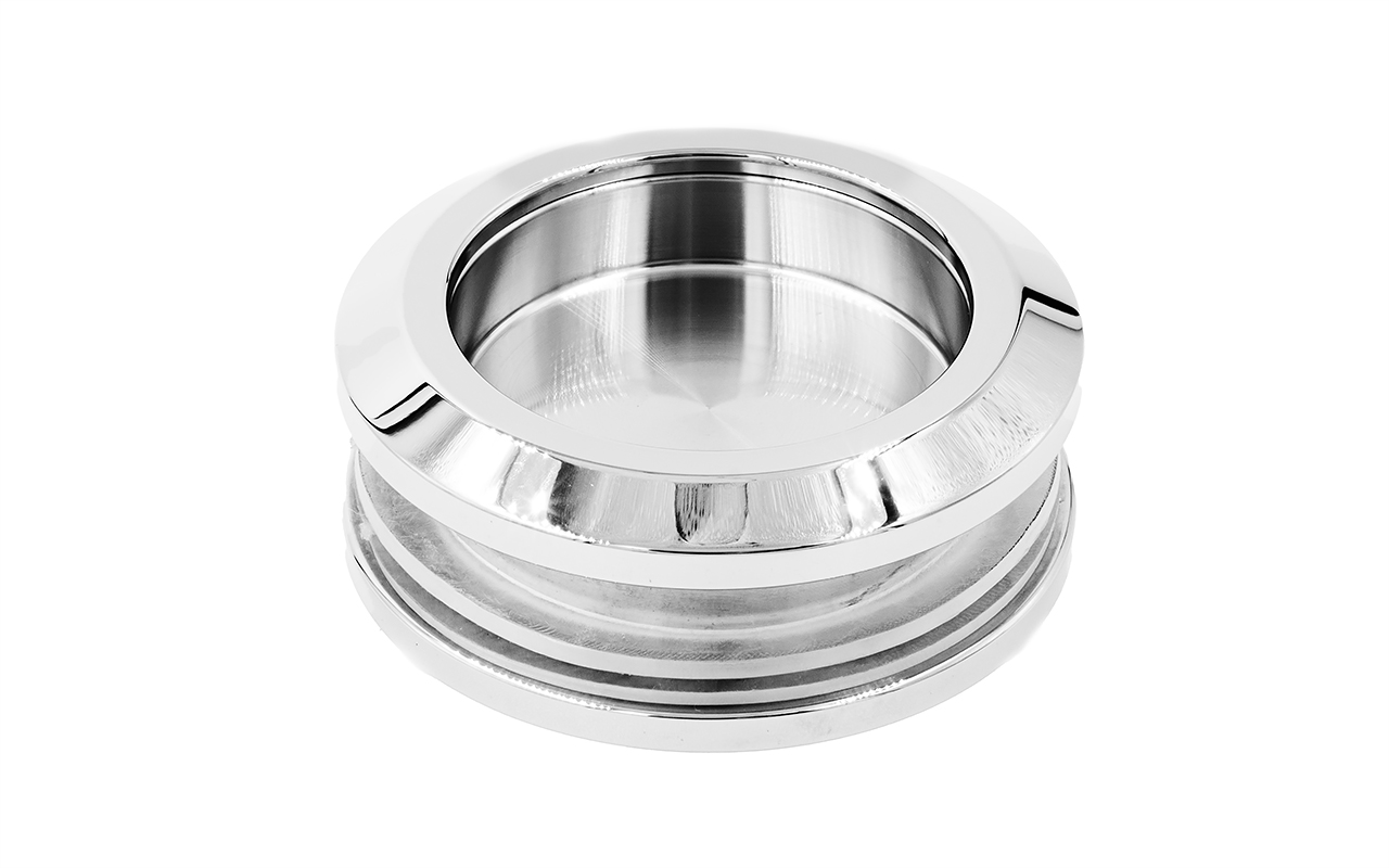 Дверная ручка с полированной поверхностью из нержавеющей стали AISI 304 для сдвижных дверей. Предназначена для установки в проемы из стекла, толщина которого находится в диапазоне от 8 до 10 мм. Не уменьшает амплитуду движения откатной двери. Внешний диаметр самой ручки равен 58 мм. Диаметр отверстия в стекле равен 47 мм. Высота от стекла до торца ручки равна 7 мм. Размер фаски равен 1 мм. Дополнительное целевое назначение – устанавливается в межкомнатные сдвижные двери.