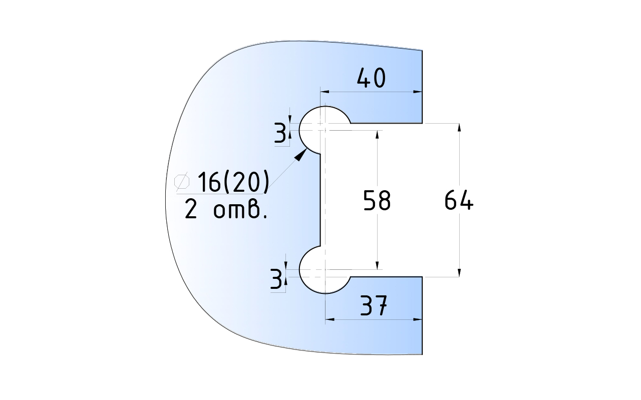 Крепление предусмотрено с двух сторон на 4 винта со шляпками заподлицо (по 2 винта на каждую сторону). Размер одной стороны петли составляет 90х55 мм.