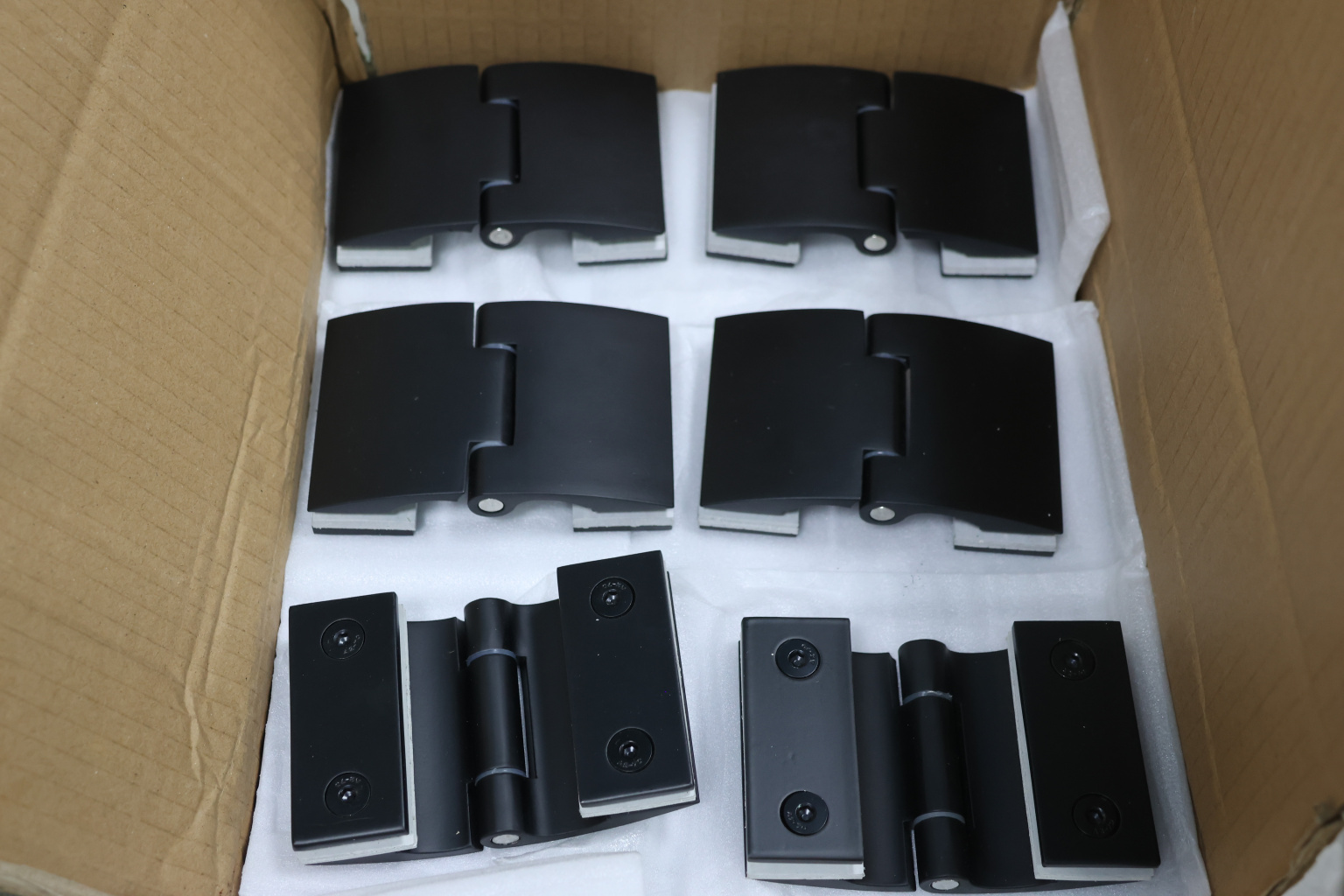 Петля для душевой кабины стекло-стекло 180°, без реза уплотнителя, черный. Выдерживает нагрузку 35 кг на две петли. Марка стали - AISI 304