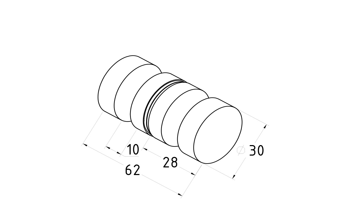 Дверная ручка «кноб», алюминий-хром, полированная, самосборная. Диаметр отверстия в стекле - 12 мм