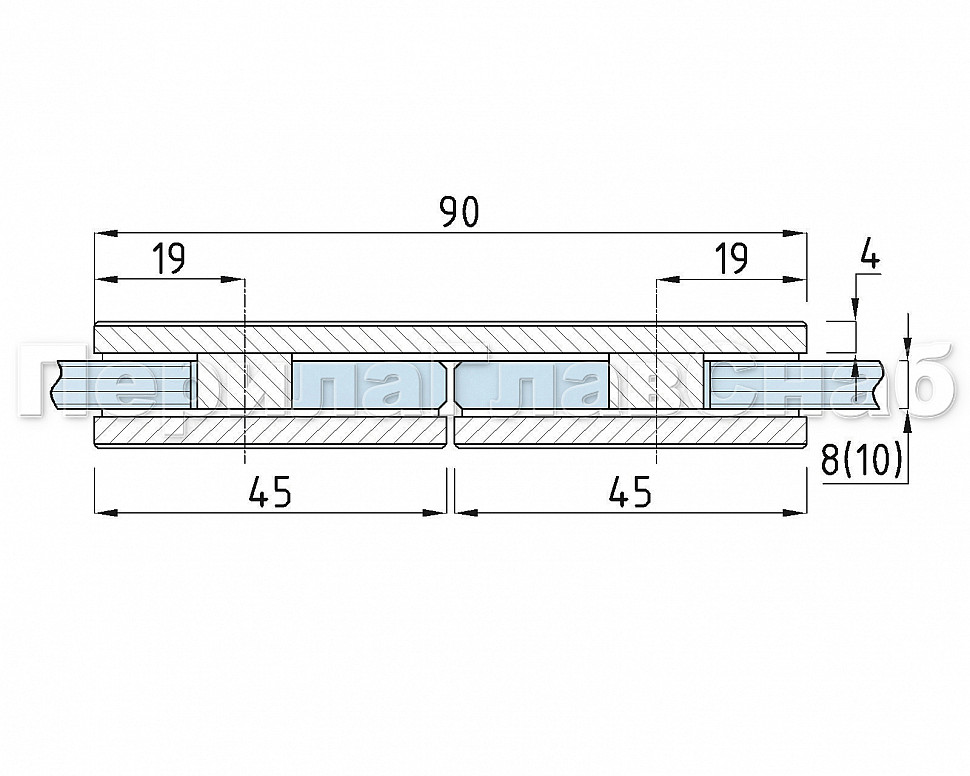 Коннектор для душевой кабины стекло-стекло 180°, 45х45 мм. Материал - латунь-хром, поверхность - полированная