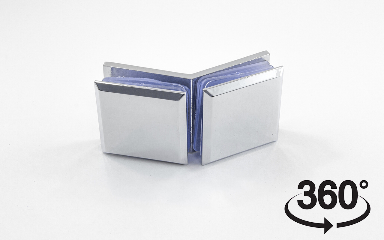 Коннектор для душевой кабины стекло-стекло 90° 45х45 мм цинк-хром полированный t735 PZn
