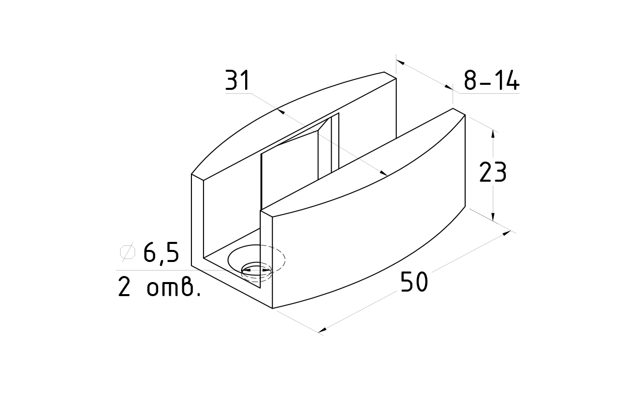 Крепление трека к стеклу AISI 304 шлифованное t449 SSS