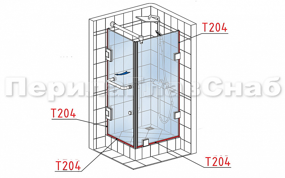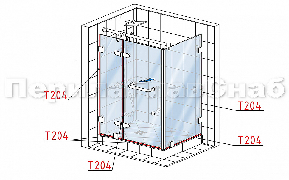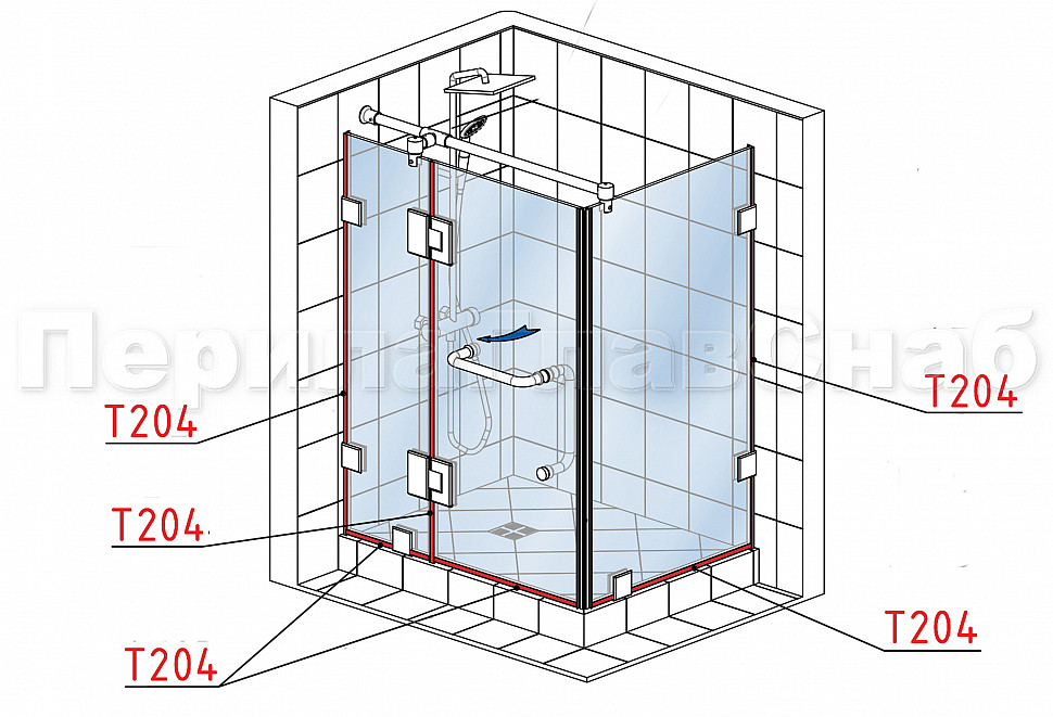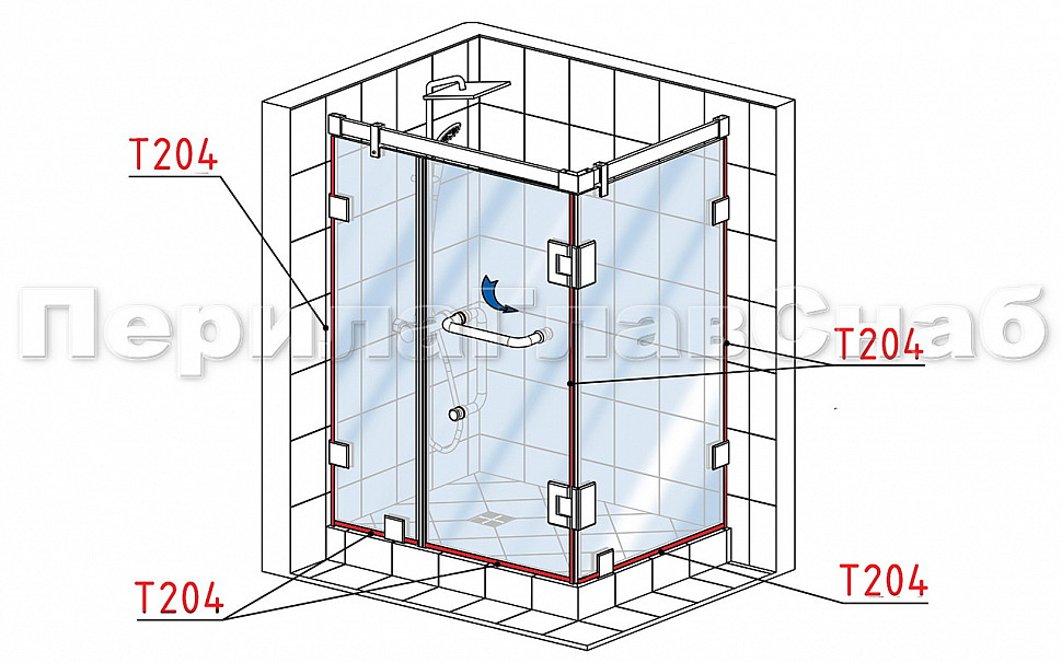 Уплотнитель для стекла в душевую кабину 8 мм, стекло-стекло 2200 мм t204
