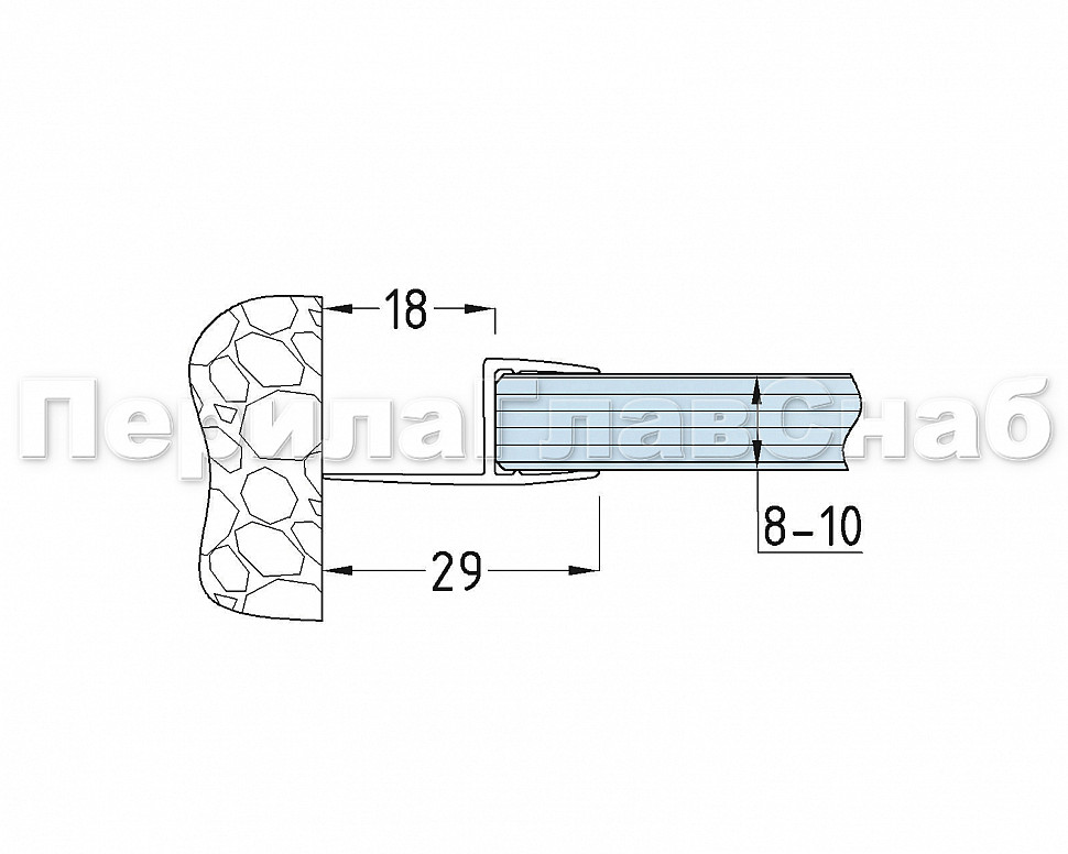Уплотнитель имеет исполнение прозрачной поверхности, выполнен из материала ПВХ. Имеет Ч-образный профиль. Толщина одного типоразмера составляет 1.5 мм, длина – 2200 мм. За счет своих свойств (стойкость к щелочам, минеральным маслам и многим кислотам) прекрасно подходит для крепления стеклянного листа по всему периметру. Позволяет соединять стеклянные панели между собой. Он применим в сочетании со стеклом толщиной до 8 мм и углом в плане до 1800
