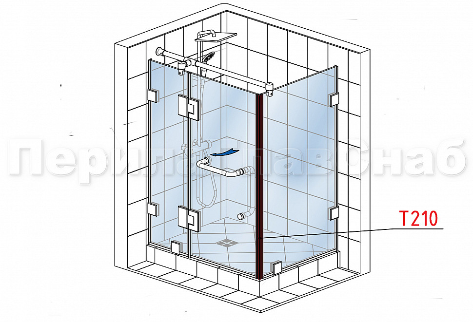 Комплект раздвижной системы для стеклянной душевой, нержавеющая сталь AISI 304, полированная t401 PSS купить в Симферополе