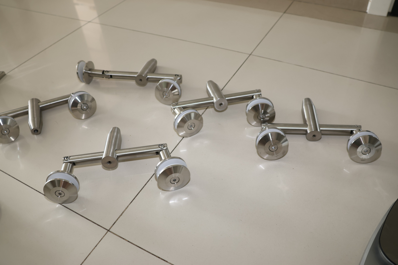 Двойное крепление с рутелями к стене, поверхность полированная, марка стали- AISI 304