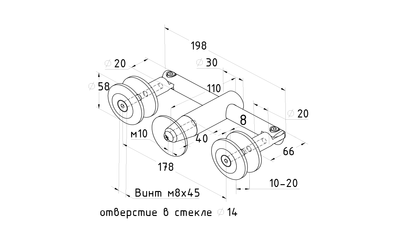 Имеет два стеклодержателя и одну точку крепления к стене.