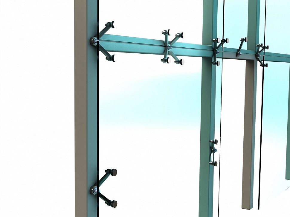 Рутель шарнирный (стеклодержатель) используется при спайдерном остеклении, остеклении фасадов, остеклении вертикальных фасадов, остеклении вентилируемых фасадов, монтаже входных козырьков из стекла, монтаже входных козырьков из поликарбоната. Отверстие в стекле под рутель нужно делать 40мм. Предназначен для стекла или поликарбоната от 16 до 24 мм. Шаг резьбы рутеля 1,5 мм. При желании можно монтировать более тонкое стекло с применением прокладочных элементов. Гарантированно выдерживает нагрузку до 200 килограмм на деталь. Это стандартная нагрузка для стеклопакетов 8+8 и 10+10. Однако в полевых испытаниях стеклодержатель легко справился с 300 килограммами.