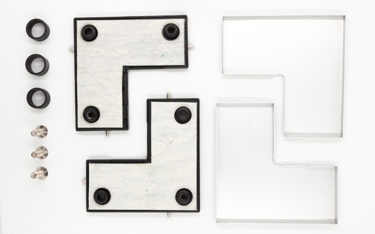 сбоку нажимаем на крепления крышек и снимаем. Отвинчиваем винты, и фиксируем фитинг в подготовленный вырез в стекле. Далее закручиваем и фиксируем обратно крышки.