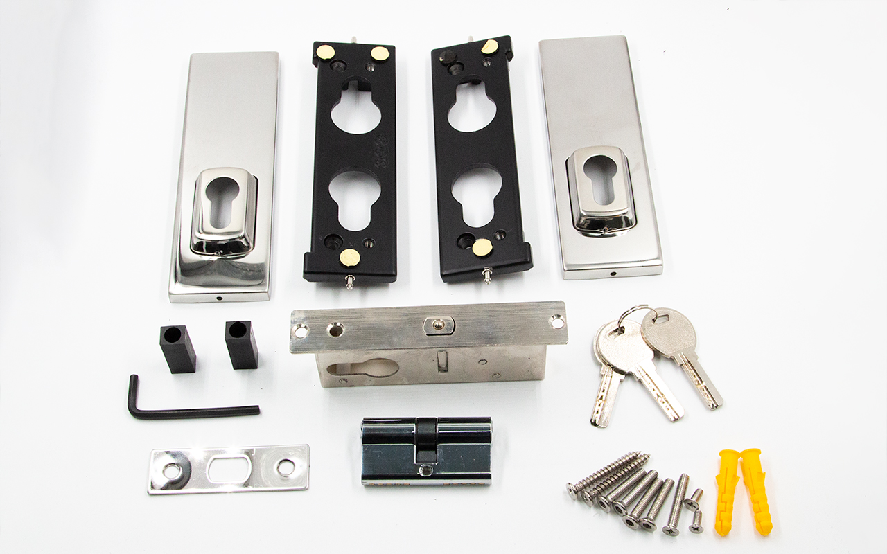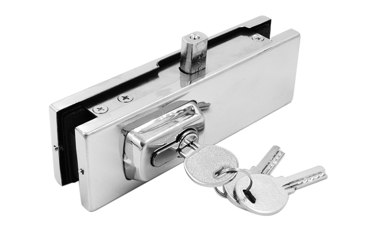 - Надежно запирает стеклянные двери. Проверено на практике: скорее не выдержит стеклянное полотно двери, чем ригельная часть замка.