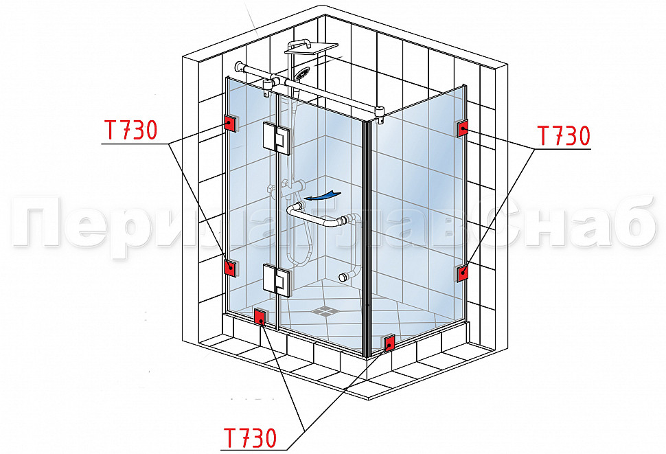 Коннектор для душевой кабины стена-стекло 45х45 мм латунь-хром, полированный t730 PC