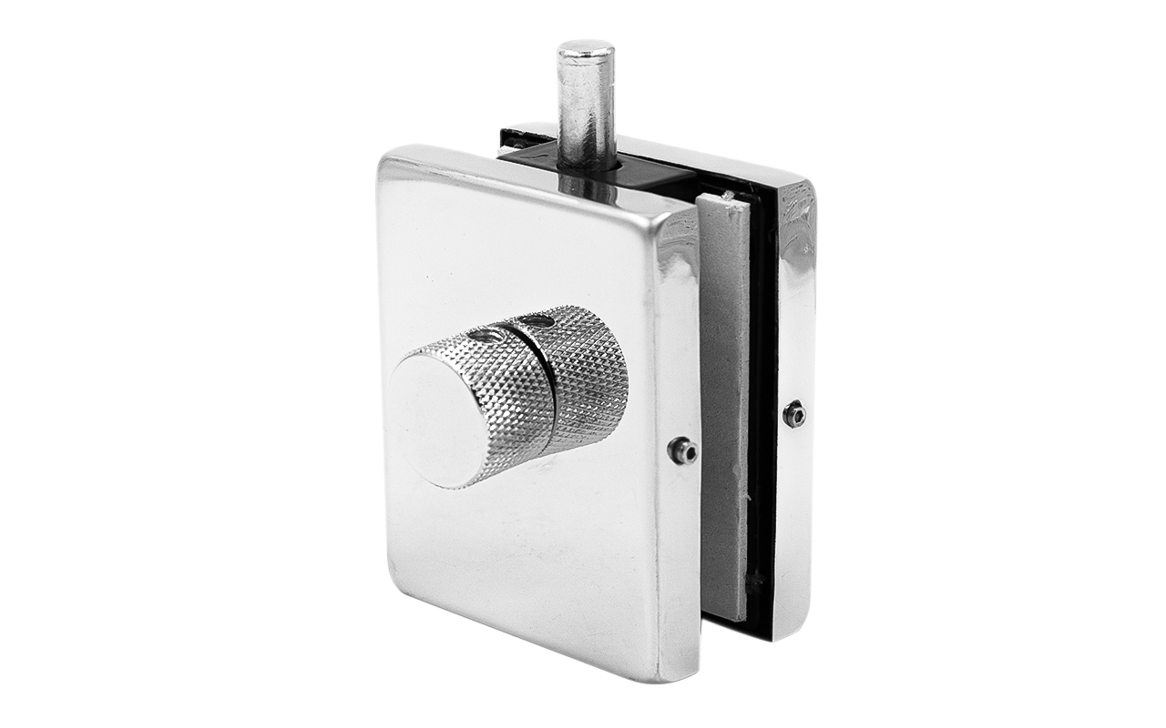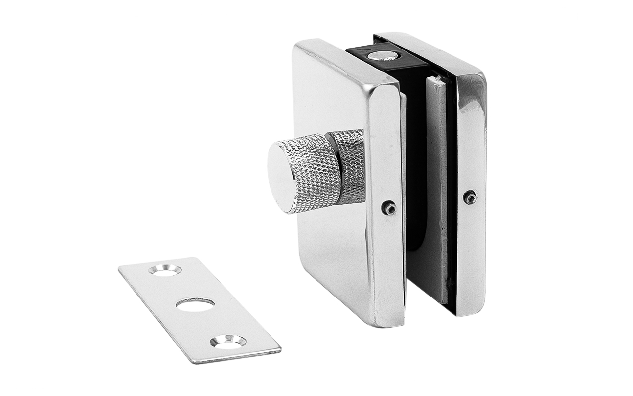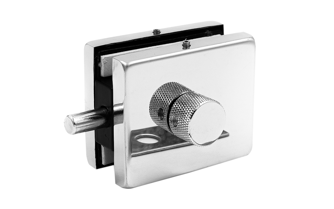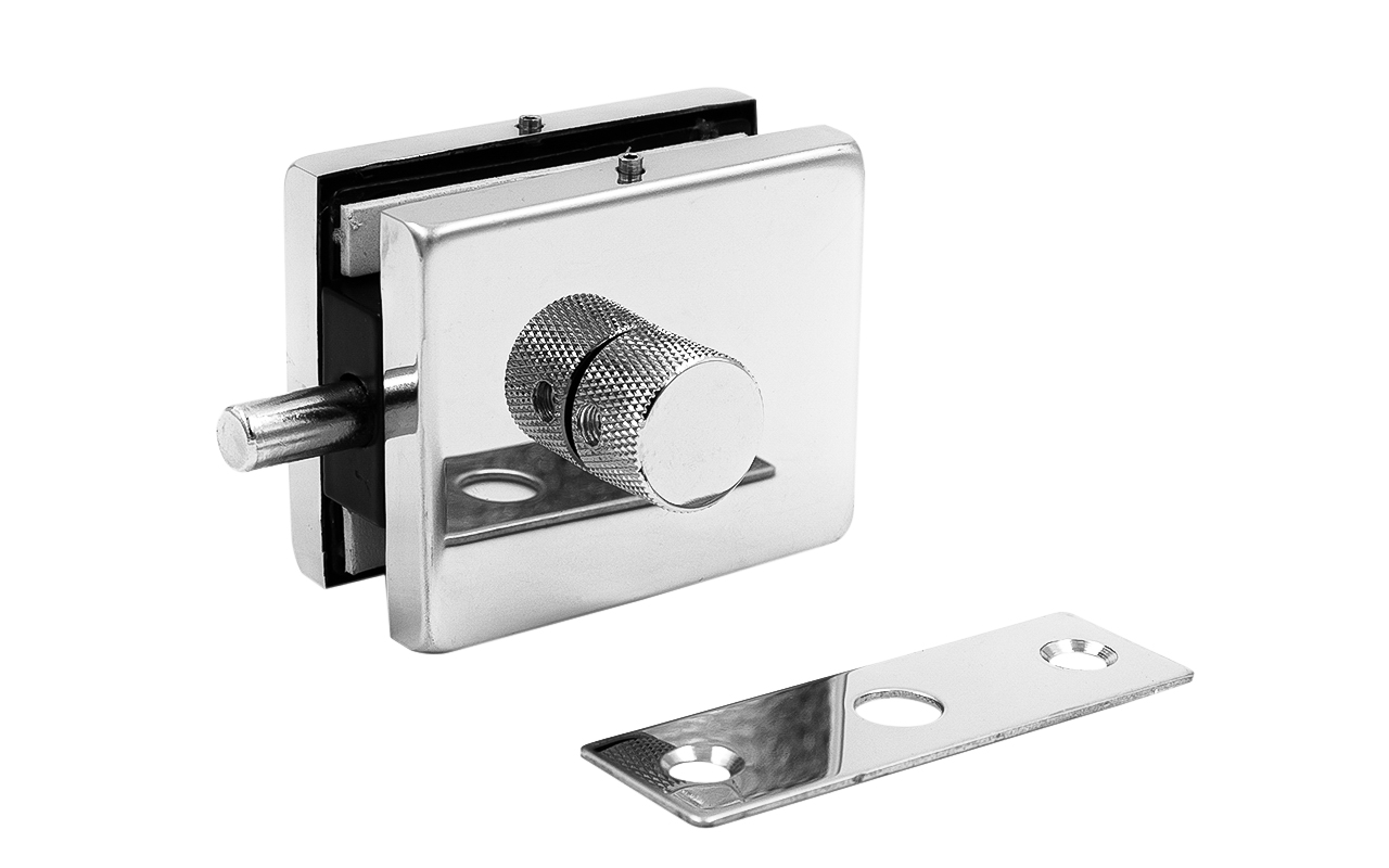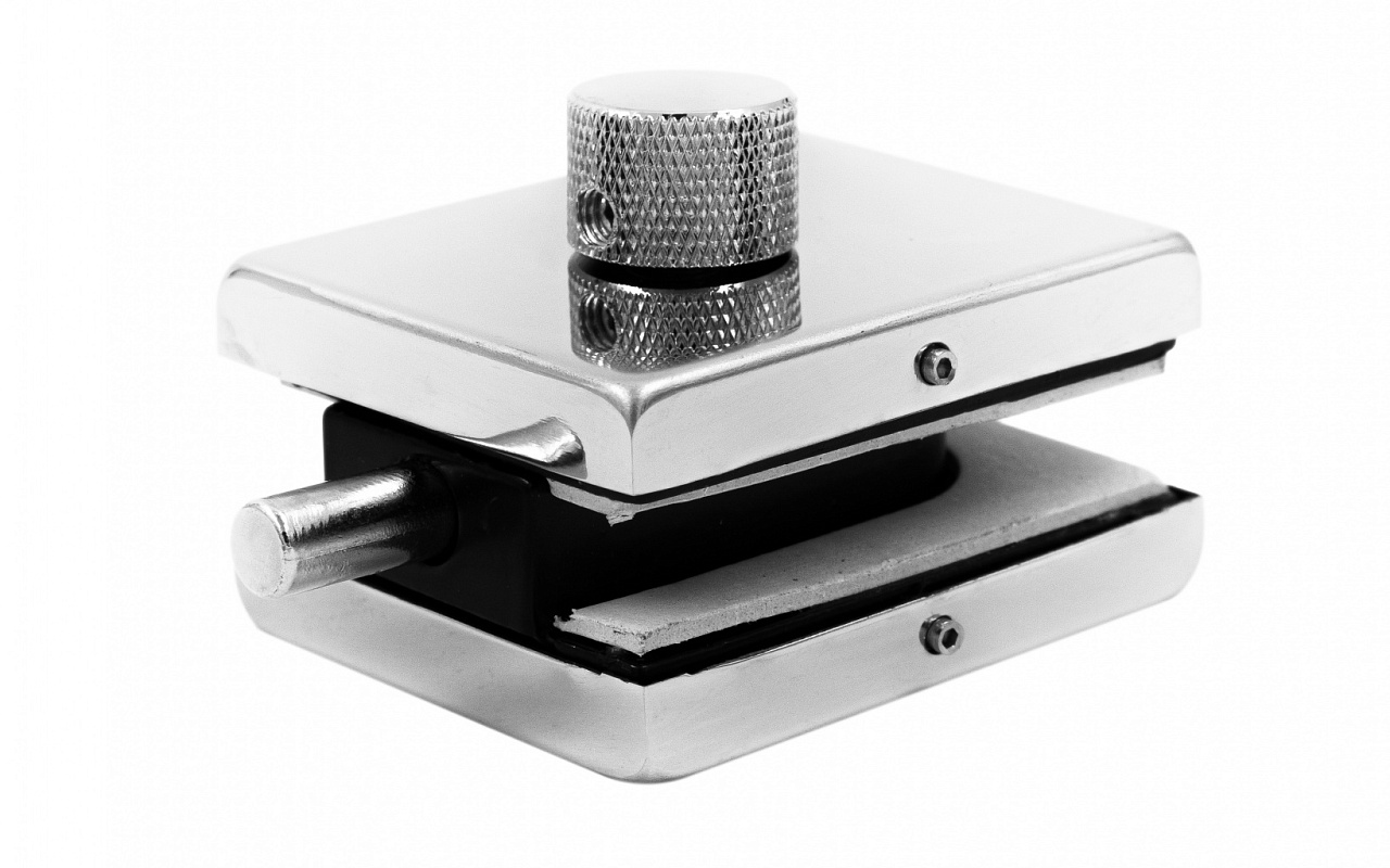Сбоку нажимаем на крепления крышек и снимаем. Отвинчиваем винты, и фиксируем защелку замка в подготовленный вырез в стекле. Далее закручиваем и фиксируем обратно крышки.