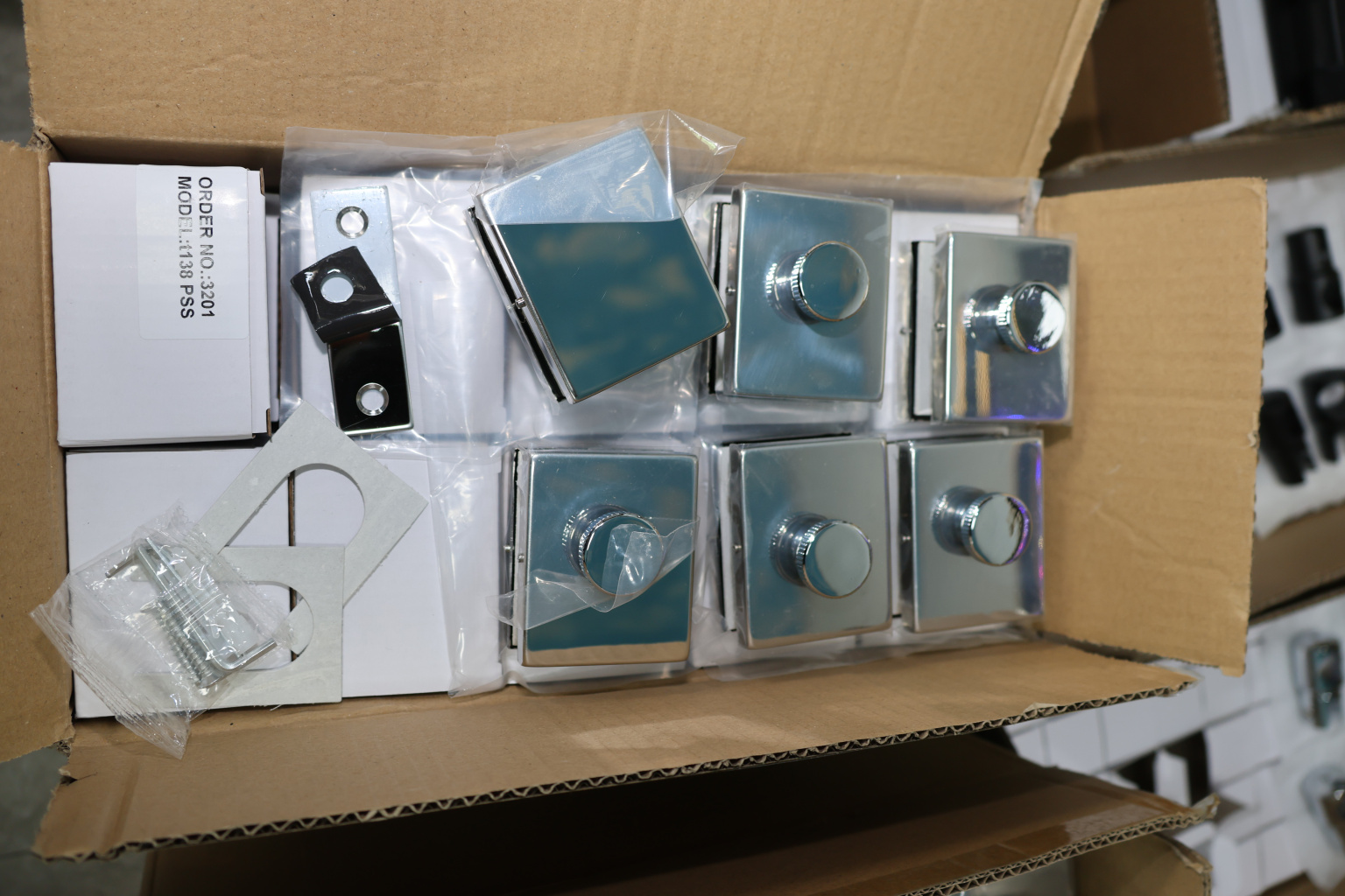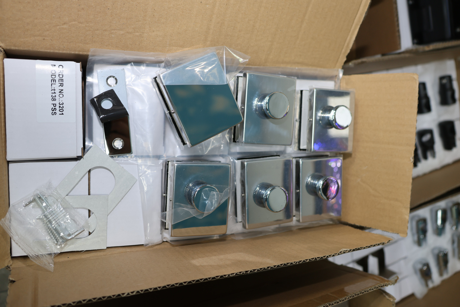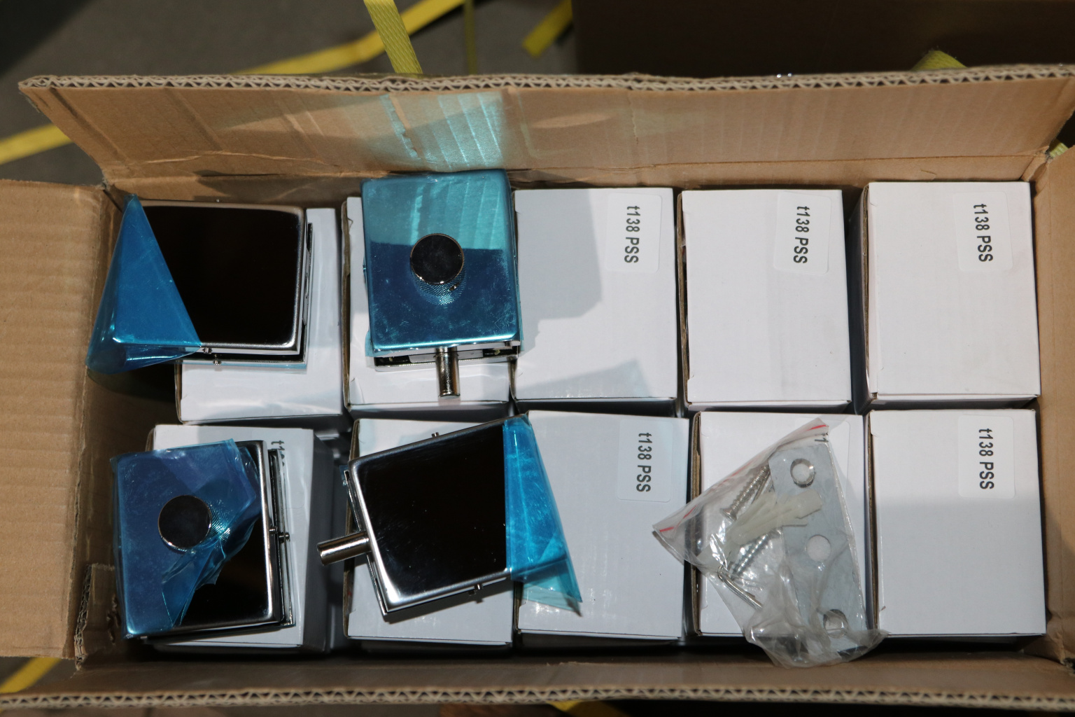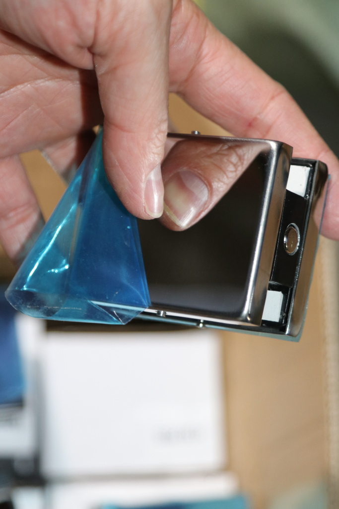 Сбоку нажимаем на крепления крышек и снимаем. Отвинчиваем винты, и фиксируем защелку замка в подготовленный вырез в стекле. Далее закручиваем и фиксируем обратно крышки.