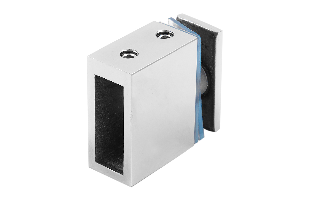 Предназначен для соединения штанги в душевых кабинах, позволяя соединить ее без сварки. Служит для крепления прямоугольного трека к стеклу. Крепится к стеклу через отверстие 14мм. Габаритные размеры прямоугольной станки составляют 30х10 мм.