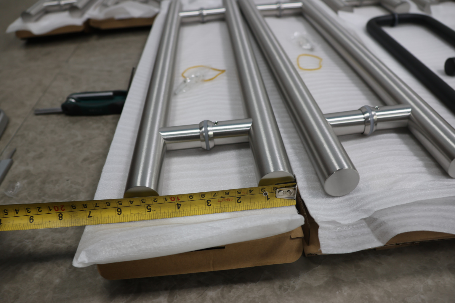 Ручка для стеклянной двери рейлинг двухсторонняя для стекла 8-12 мм, 32х425х600 мм, шлифованная, марка стали- AISI 304
