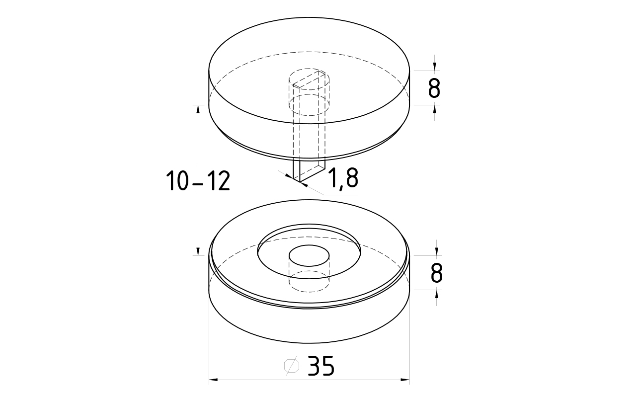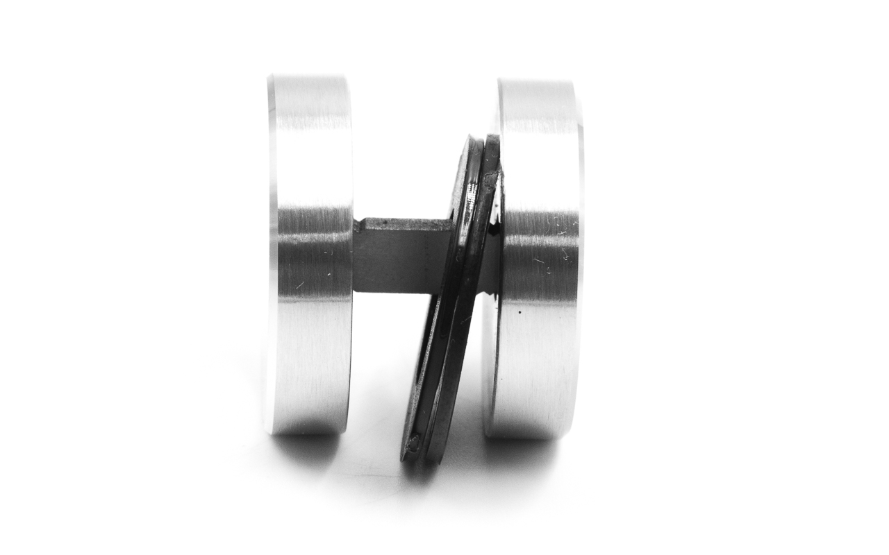 Внутри плоская пластинка 1.5мм с резьбой, позволяет соединить стекло максимально плотно.