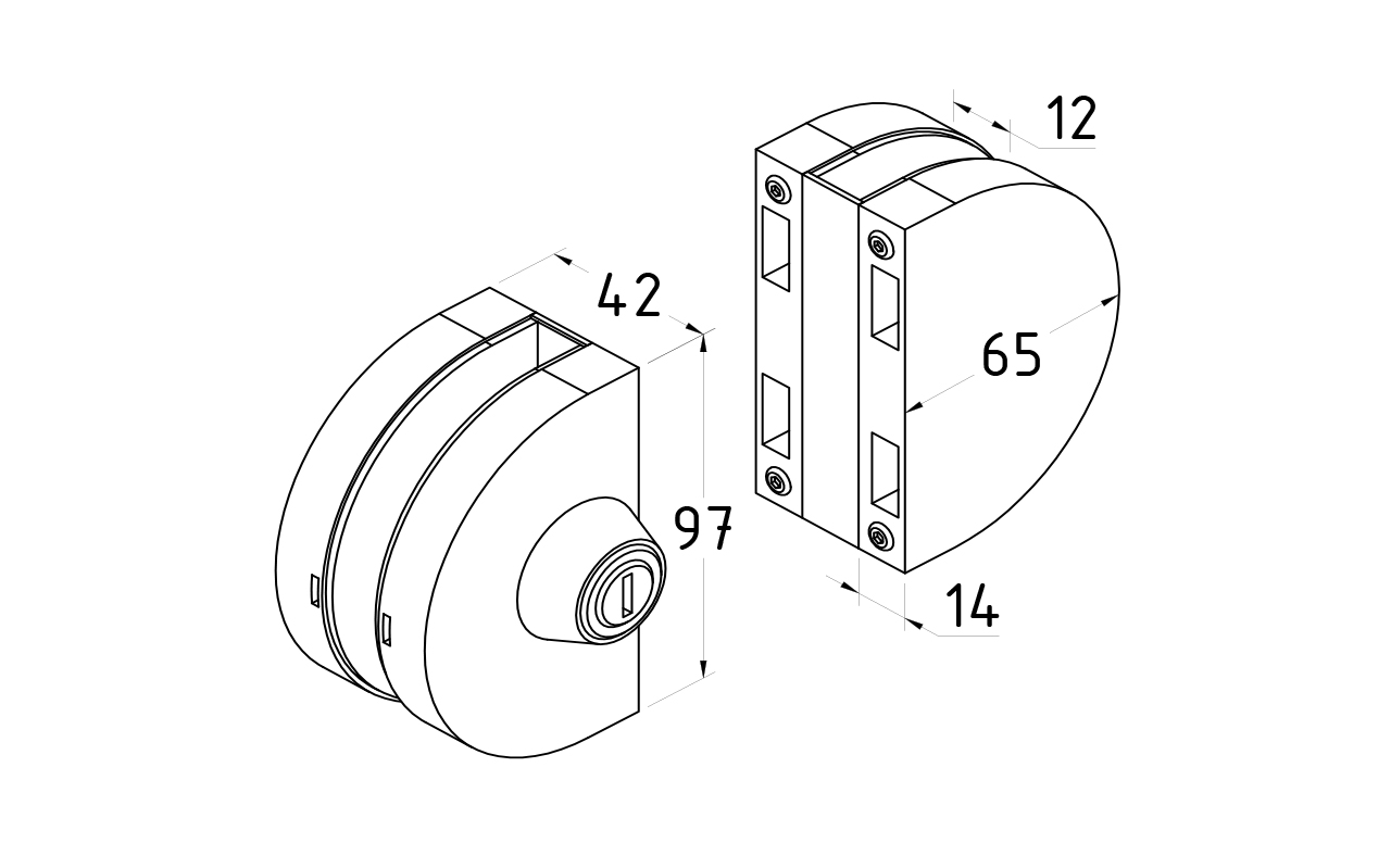 замок для раздвижных дверей, с ответной частью на стекло можно поставить уже после монтажа дверей, так как устанавливается без вырезов в стекле
