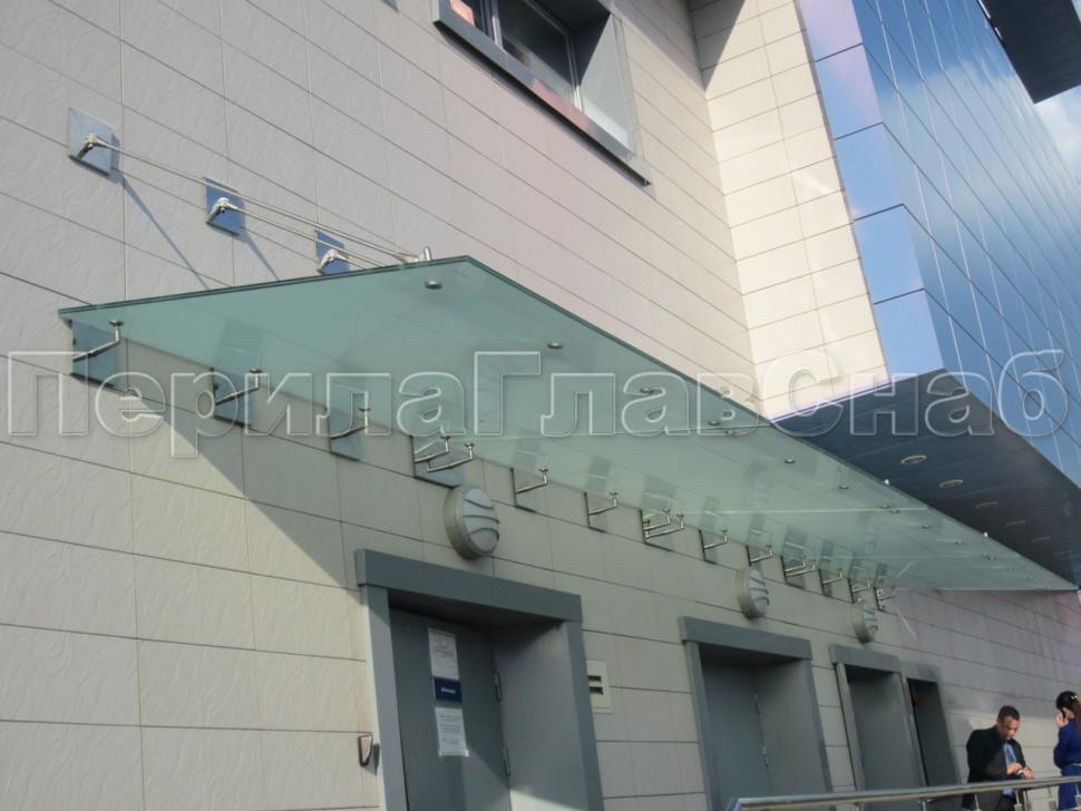 Собственное производство. Компания «ПерилаГлавСнаб» своими силами производит, доставляет и устанавливает готовые козырьки из стекла.