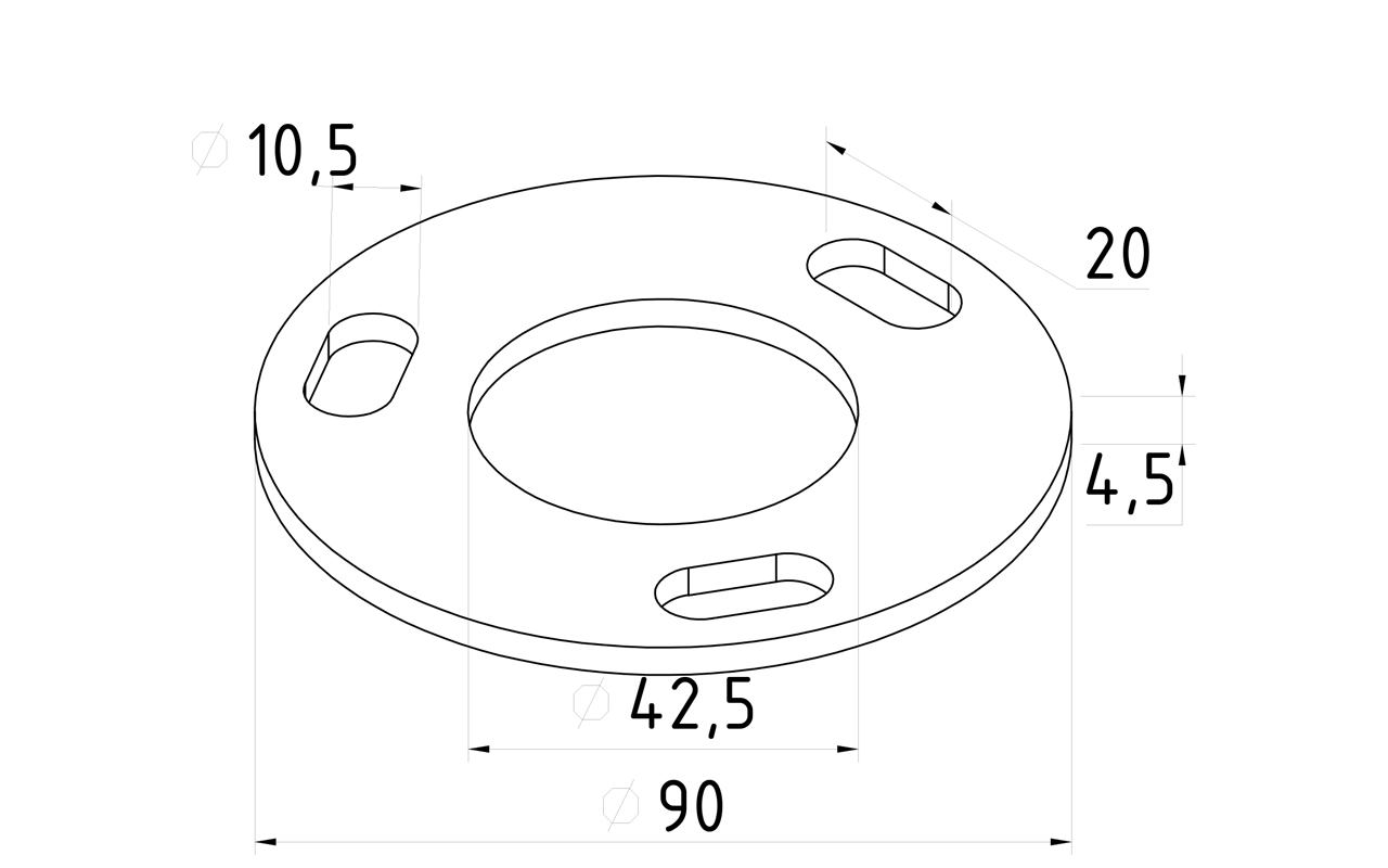 Фланец стойки 42/90 х 5 (4,3) х AISI 316 #200 3 отв х М10 х 20 k116-42-6