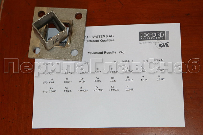 Фланец для трубы 40х40 мм с четырьмя отверстиями. Деталь литая, шлифованная, закладная под стойку. Марка стали - AISI 304