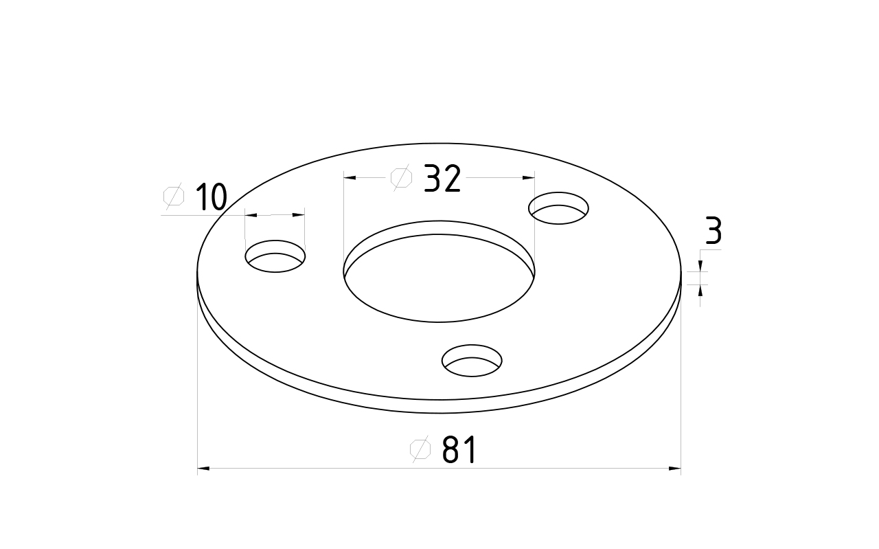 Фланец стойки большой 32/81 х 3 мм, 3 отв х М10 х 20, черный металл k116-32-9