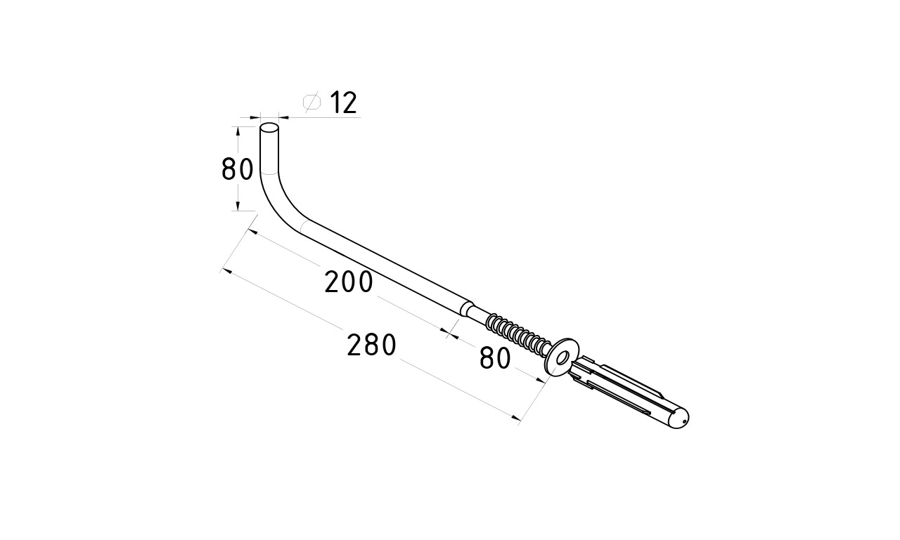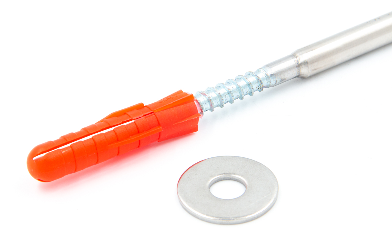 Пристенок с саморезом и ШАЙБОЙ 12х200, без ложемента, (симбиоз прутка, глухаря) + дюбель и шайба А2