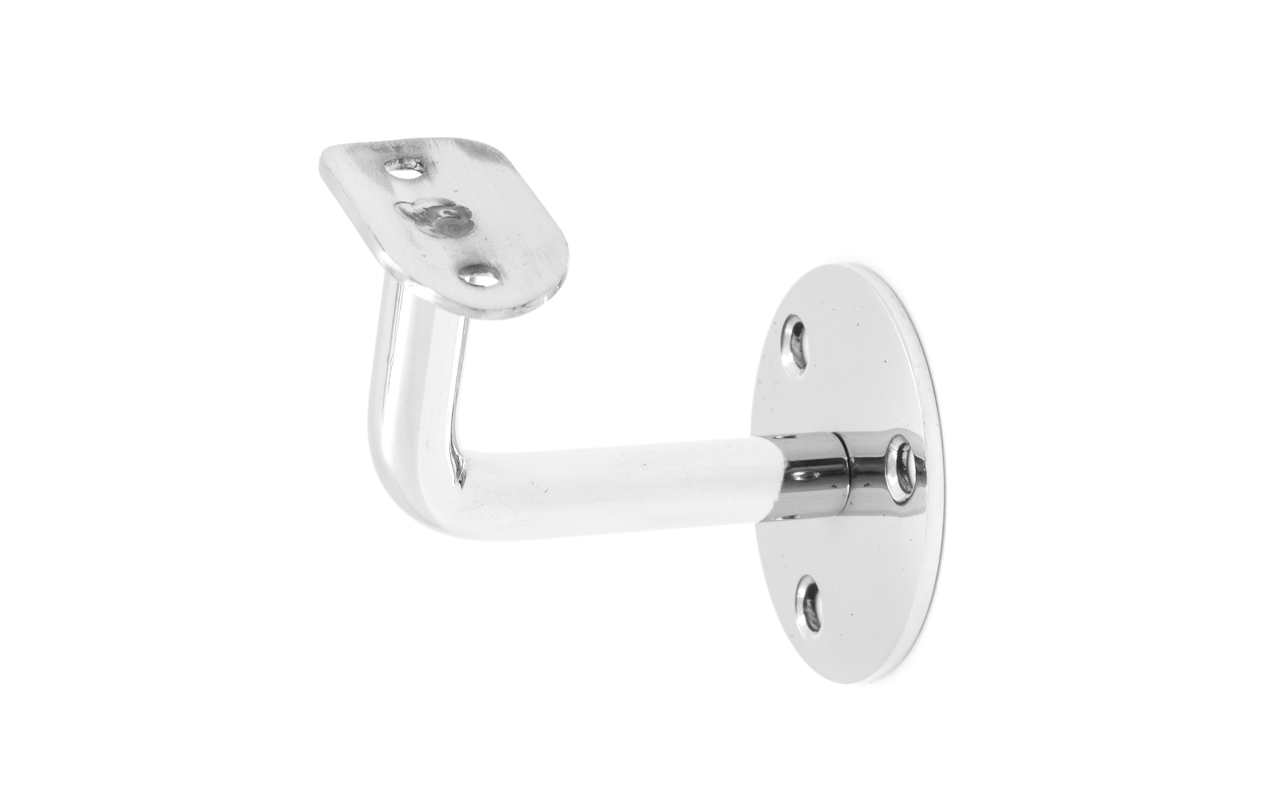К стене стальной держатель крепится фланцем на три самореза Ø3 мм. Поручень крепется на саморезы или на сварку.