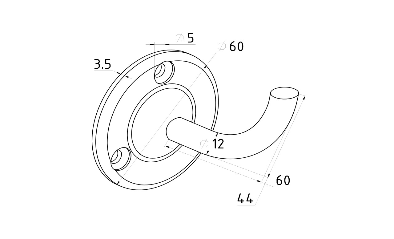 Держатель поручня к стеклу, вынос 60х70, Ø43х5 мм для стекла 10-12мм, (AISI 304) k008-5