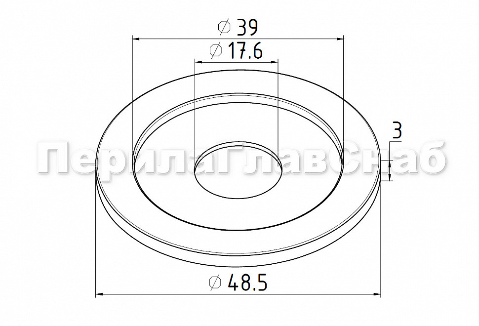 Розетта для трубы Ø38.1 мм, Ø48.5х3, с отверстием Ø17.6 мм (AISI 201) k050