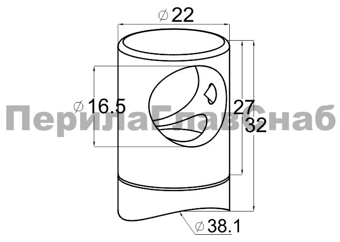 Предназначен для крепления ригеля Ø16 (тетивы, струны) к стойке диаметром 38.1 мм ограждения с ригелями.