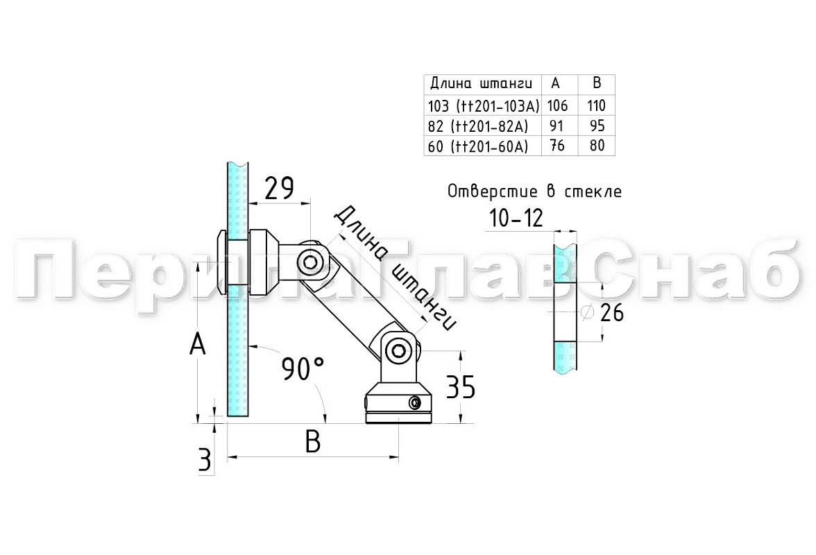 Крепление стекло-стена, штанга 103 мм, без зенковки tt201-103А SSS