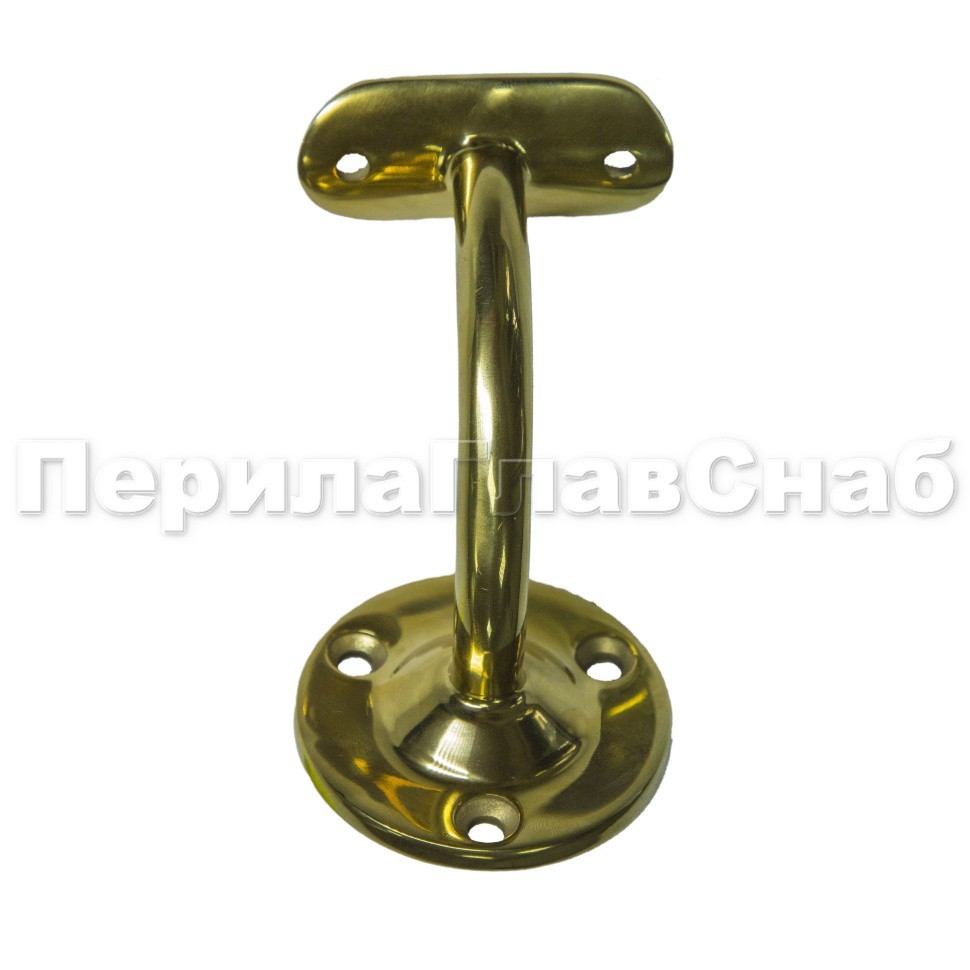 Держатель покрыт под золото в специальной камере. Покрытие нитрид титана коррозиестойкое и устойчиво к механическим повреждениям. Ложемент у этого золотого пристенка под поручень диаметром 50.8 мм. Благодаря оптимально подобранному выносу, пристенный поручень достаточно удален от поверхности стены, чтобы не задевать скользящей вдоль трубы поручня рукой идущего по лестнице человека. Но при этом поручень располагается близко к стене, дабы не сужать свободное пространство полезной ширины лестничного марша.
