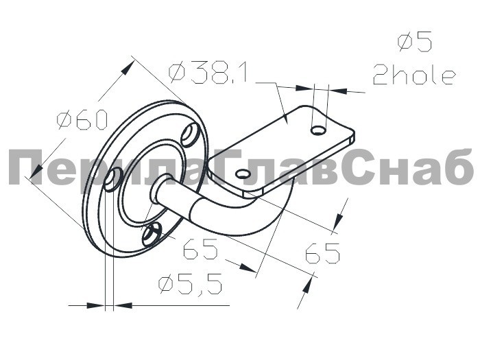 Пристенок с ложементом под Ø38.1, вынос 70х45, Ø60х3 мм, литой, 25х45х2 мм