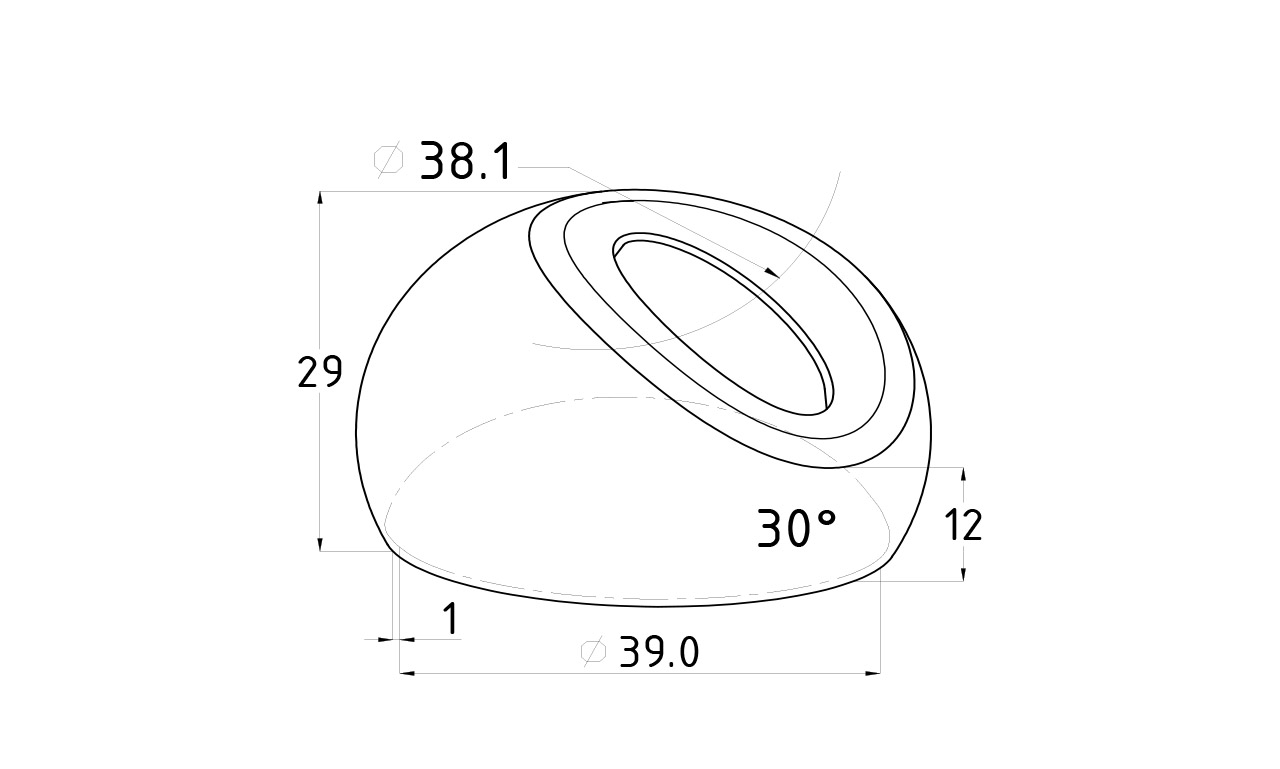 Наконечник штампованный (СПС) косой 30° на трубу Ø16 мм, для поручня Ø38.1 мм, полированный, нержавеющий, (AISI 201) k212-3