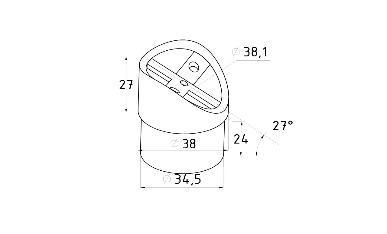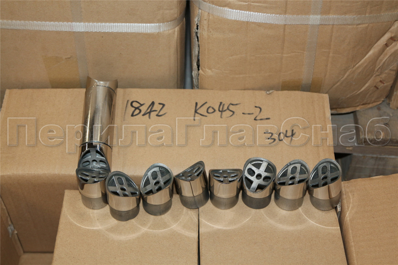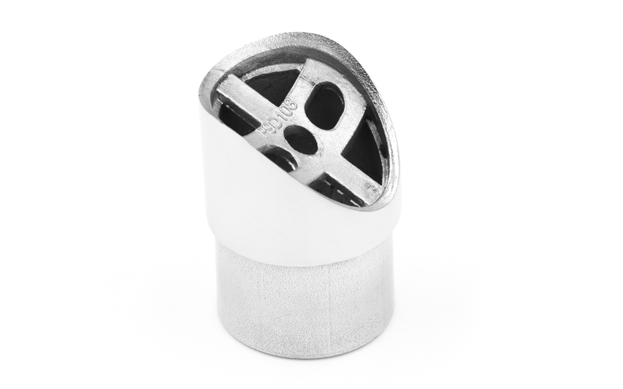 Наконечник седловина косая 30° на стойку Ø38.1 мм, под поручень Ø38.1 мм, литая, полированная, AISI 304, k045-2