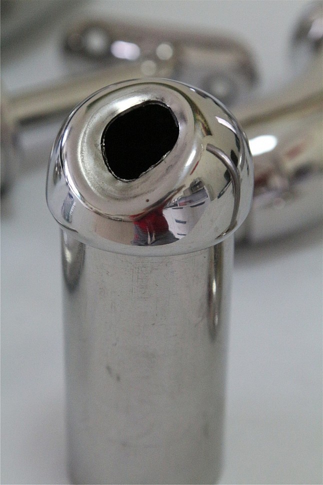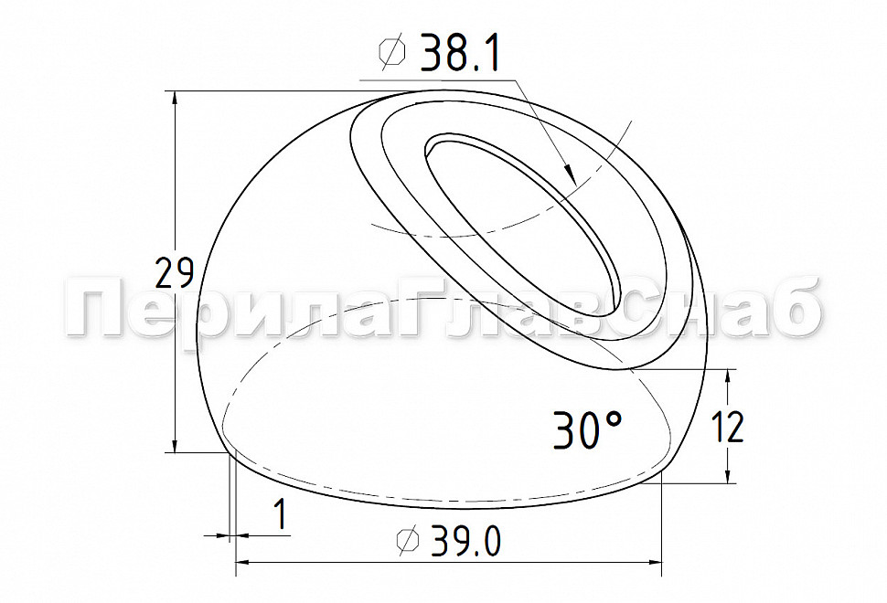 k016-4 наконечник штамп, под 30°, Ø38.1 мм, для поручня 38.1 полированный (aisi 201) Cамый распространенный тип наконечников для соединения круглых стоек и круглых поручней на наклонных маршах.