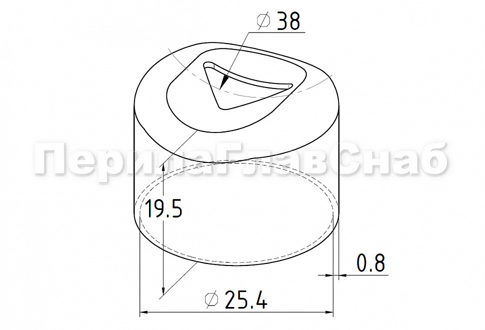 Наконечник штампованный (СПС) прямой 90° на трубу Ø25 мм, для поручня Ø38.1 мм, полированный, нержавеющий, AISI 304, 400Grit, k071-2