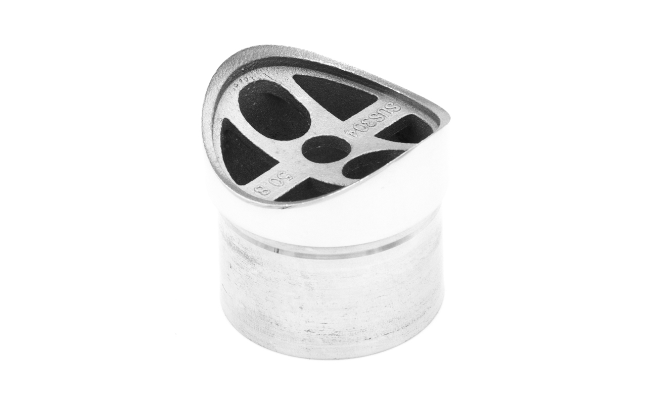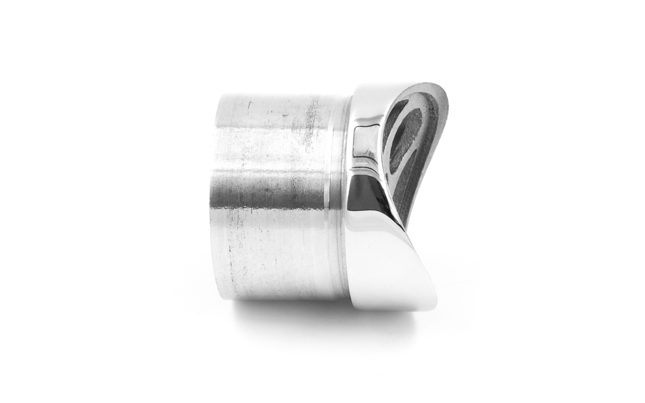 Наконечник седловина прямая 90° , на стойку диаметром 38.1 мм, под поручень диаметром 50.8 мм. Деталь литая, полированная. Марка стали - AISI 304