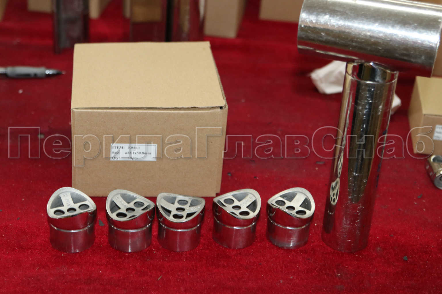 Наконечник седловина прямая 90° на стойку Ø38.1 мм, под поручень Ø50.8 мм, литая, полированная, AISI 304, k044-1