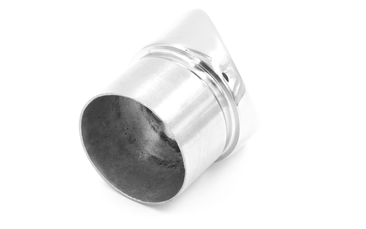 Наконечник седловина прямая 90° на стойку диаметром 38.1 мм, под поручень диаметром 38.1 мм. Деталь литая, полированная. Марка стали - AISI 304