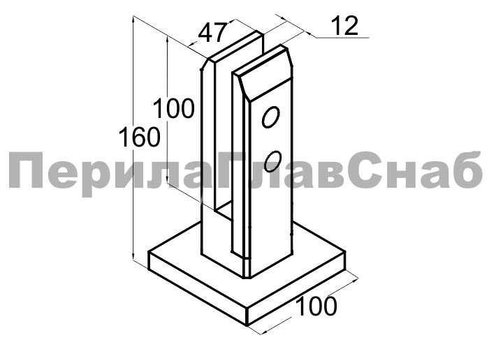 Стеклодержатель напольный 50х50х160 мм, литой, плоский, без сверления, нержавеющая сталь AISI 304, полированная k275-3 купить в Симферополе