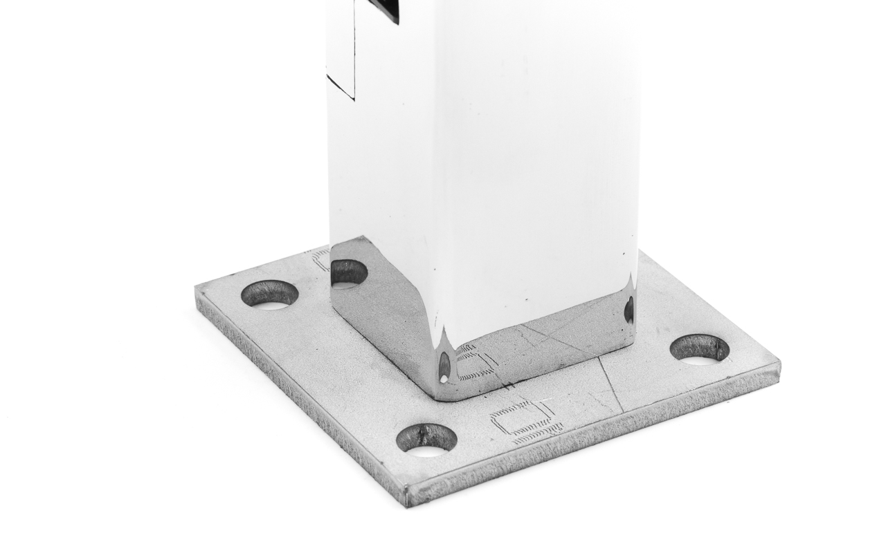 Держатель крепится в пол на 4 анкера или шпильки. Для этого предусмотрено 4 отверстия диаметром 10мм-12мм. Высота ограждения должна быть не более 1200 мм от пола.